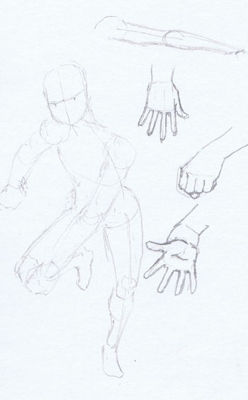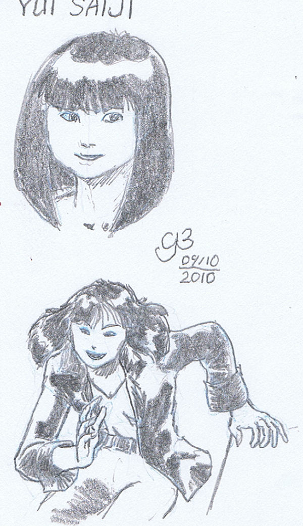 Wow, Bill really showed some skills with that pencil! And Flavio's no slouch when it comes to working that iPad brush app, either. A curious effect on the lady in Flavio's last iPad scribble: the contours of the clothing on her body and the way her eyebrows seem to be connected is making me think "Klingon!" for some reason. It looks like quite a unibrow got painted onto her. Here are a couple of small sketches that I managed to kick myself into putting together.