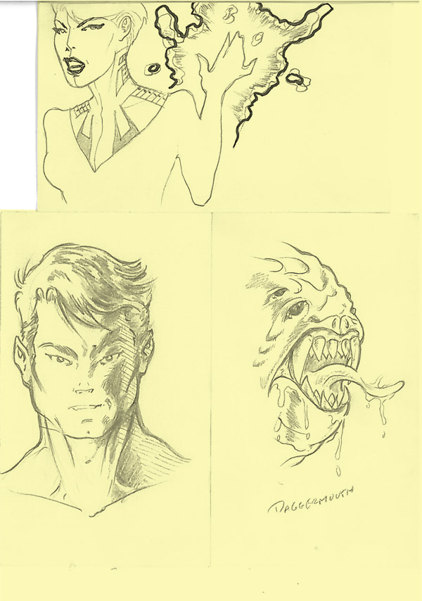 DC, neat little "Post-It Note" sketches.  I especially liked the lady at the top, with the "psi-field" effect on her hand.  That was one of the first comicbook FX I picked up on as a kid.