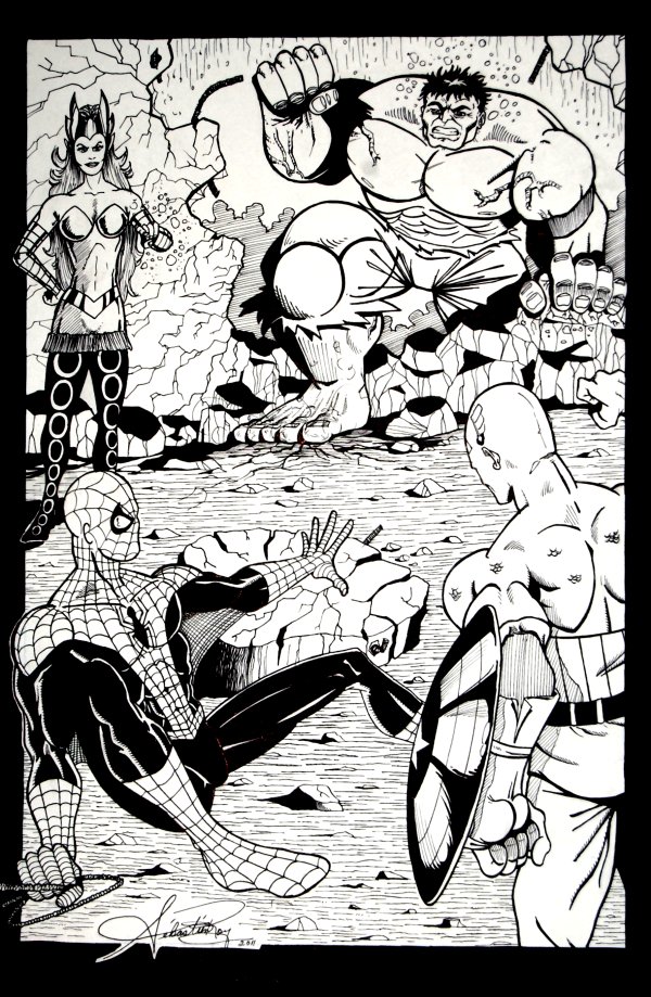 Just found this. Original pen & ink for the Max Creek Halloween Show at Hoops in 2000. It's huge, about 15x20". Took me some time to scan pieces and put them together in Photoshop, but, I've always loved the idea. Steven, the owner, wanted to convey that the band had 'roots' in Simsbury, and especially to he and Hoops. I can remember watching the Yankees play the A's in the playoffs while inking. Printed in Glow-In-the-Dark white on a charcoal grey t-shirt, which sold out. Can you say "collector's item"? (There's a cigar chomping Jack O' Lantern on the front 'pocket' area.)