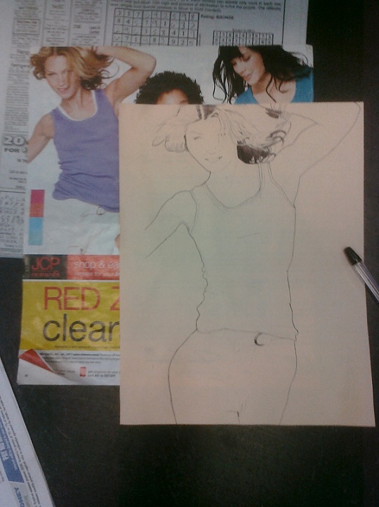 Bored at work so sketched a JCPenny ad and thought I would see if I could "ink" it to make it more "Hughesian" (unfortunately the camera phone lost most of the detail)