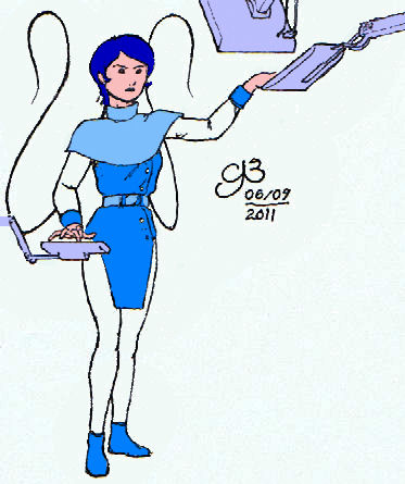 One thing I'm finding out about the 64-color palette is that it's quite limited in the choice of colors. I intended for the character's skin to be quite lighter than that (almost an albino), and there really wasn't much choice of what to color the keyboards and equipment she was using. It really must've been a juggling act for those guys back in the pre Baxter paper days. That may explain why, when the comicbook industry switched to a more extensive 128-plus color palette when they upgraded their material during the late 1980s, they had an increased variety of tones to use for different lighting effects, skin tones, etc. Now, we have millions of computer-generated colors on shiny cover stock pages, and nobody seems to have any idea how to make a page stand out.