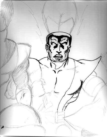 I've begun sketching my attempt at the splash page from X-Men #107. This is by no means the final version.