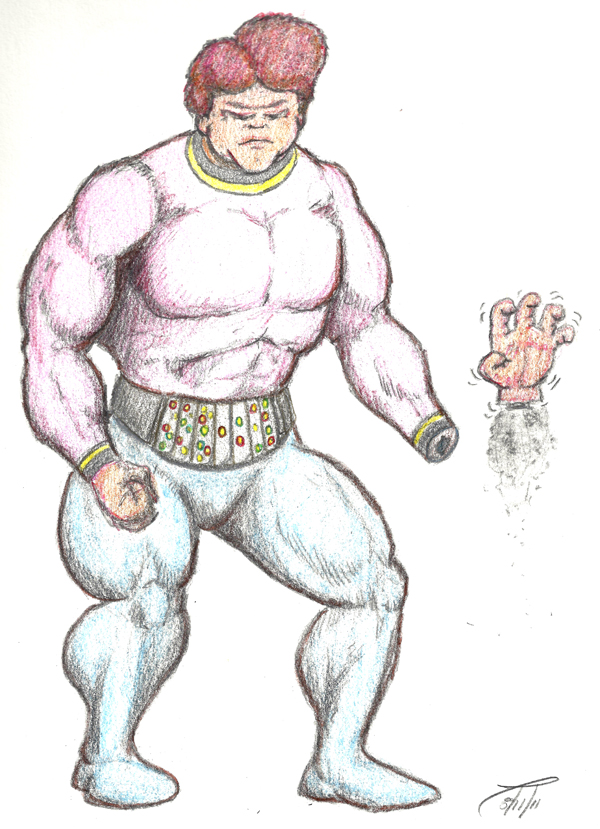 One thing that I'm learning all over again are the advantages and disadvantages of inking with pen on certain types of paper. In this case, the type of pen on smooth 2-ply Bristol board. You might not see it on this scan, but the large pen tended to bleed a little with the fount India ink I was using. It's making me wonder if I should stick to the markers on these projects, or opt for a set of rapidograph pens. Other than that, I think I'll benefit from the lightbox technique, even if "interpreting" whatever pencil art manages to shine through the overlying medium is something of a new skill that I need to refine.