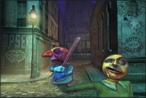 posted this on my facebook page, thought I would share it here too. This is a 3d image. About ten years old. I was attempting to get the 3d I was doing to look like my paintings. "Pup Hed in Paris"
