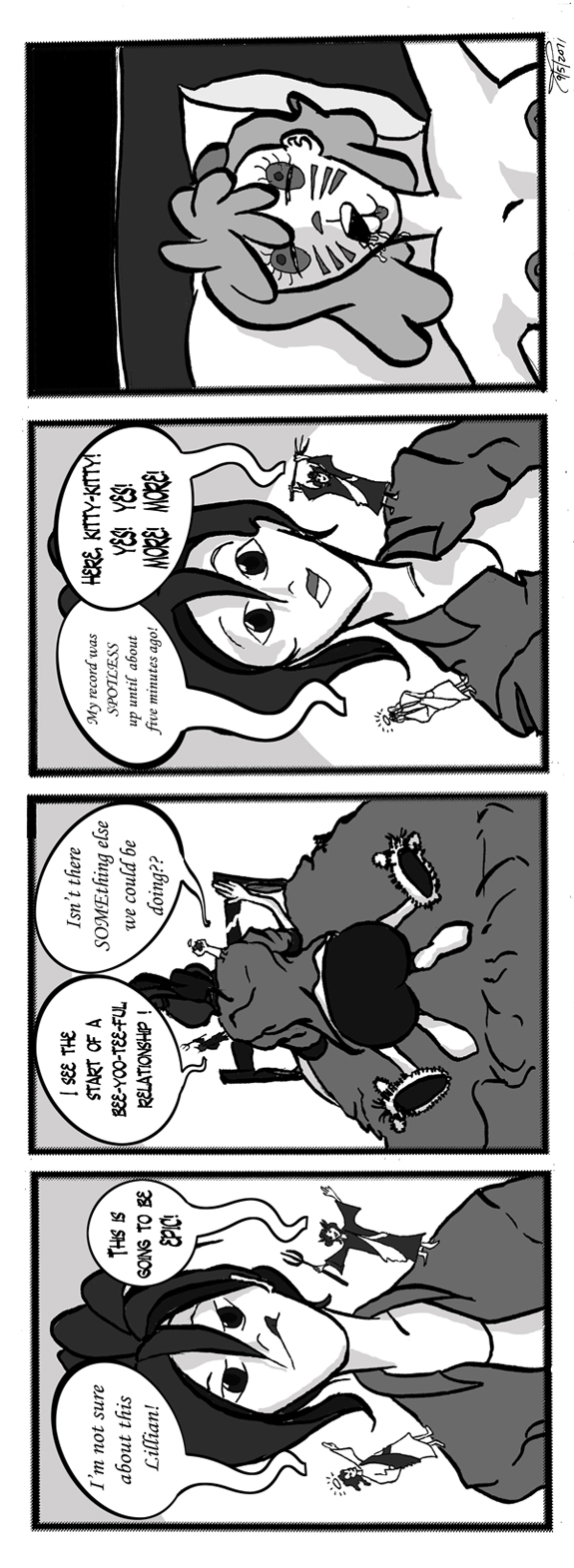 This one would be the first two panels from a "work in progress".  I've started finding a way to ink using PITT and Micron markers, since the dip pens tend to "bleed" on me when I put it to the smooth 2-ply Bristol board (confounded summertime humidity).  The LightPad is coming in handy, too.