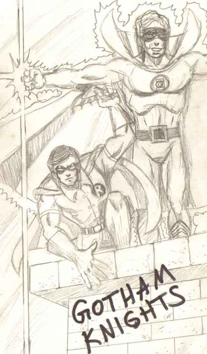 Also, if you'll permit, the reality of the alleyway is not firmly established as far as consistency and lighting goes. If the streetlight we see is the only light source, the circle it casts isn't large enough to light panel one as it is shown. Also the streetlight seems a little too short, especially if the building wall in panel three is supposed to be the building upon which Batman is standing. In panel four, the sketchily rendered building with the dumpster is presumably the same building we see in panel one, yet it is now quite distant from the one on which the Batman is standing.