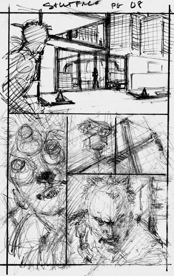 Sequential page from the book I'm currently penciling...this is the thumbnail that is enlarged & lightboxed from which the final pencils are drawn.