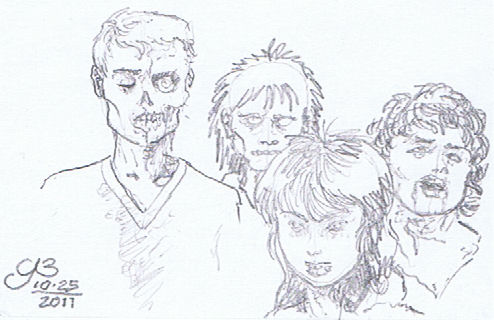It's the Halloween weekend coming up.  I'm posting some of my latest workbreak sketches with this in mind: