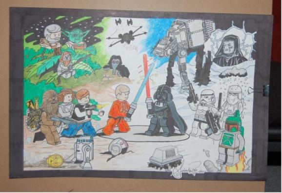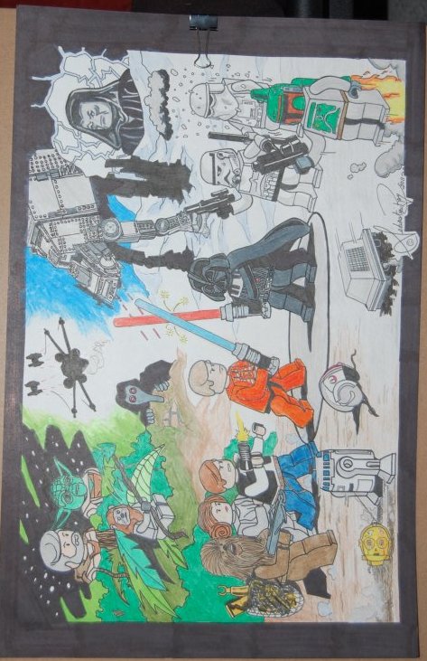 Here's my latest.  A Xmas present for a friend of mine's son, who is into Lego Star Wars.  My son is extremely jealous so I'll have to draw one for him now.  I had an awesome time drawing this piece.  Enjoy.