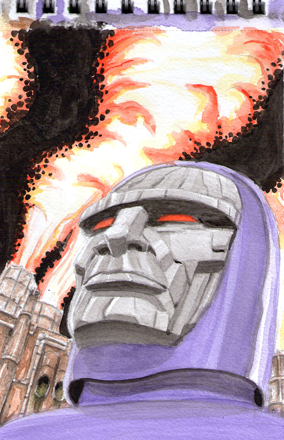 Been practicing watercolours in my spare time lately. Still not there, but getting better. Darkseid looks a little... Easter Island-y here..