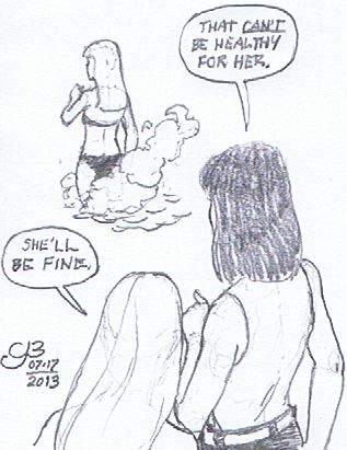 James, Storm looks like the Coppertone girl getting spooked by someone eyeballing her bum...