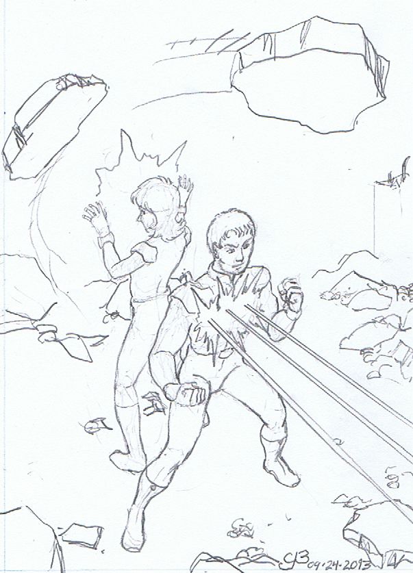 I didn't quite do that right, and wound up with a mess of catch-up. I'm still in the process of inking it, though. I'll add details to be backgrounds after I get both of the characters inked.