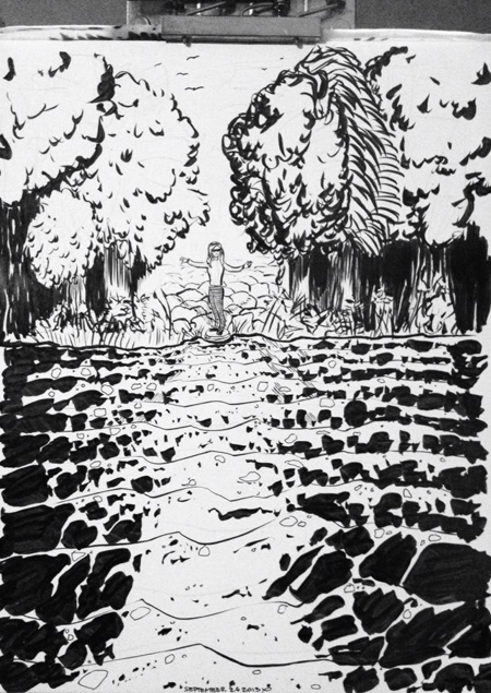Kinda looks 3D with the inking! The scanner washed out some of the central water splashes, but you're not missing much. Adding "water" to my list of stuff I need to learn to do.