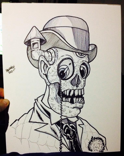 That is Tony Harris' Whistling Skull character from DC comics. A quirky little JSA retcon that I secretly love.