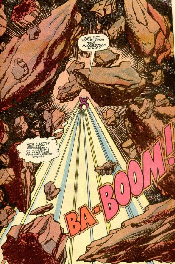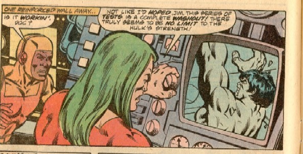 "The madder he gets, the stronger he gets" began as a neat way of avoiding quantifying the Hulk. We have no real way of knowing where he "starts", strength-wise, so having him get stronger and stronger with the increasing level of his anger is a fairly tidy way of keeping the readers guessing. It the latest menace going to be enough to beat the Hulk? Or will the Hulk keep getting stronger and stronger each time he is knocked down? (This also means the writers have to be clever, as they have to come up with ways for the villains to stop or contain the Hulk other than just hitting him. That only makes him mad.)Alas, asking some writers to be clever is like asking pigs to fly -- it's far easier to have the Hulk be infinitely powerful. (Powerful enough to smash Earth sized "asteroids", for instance. Gimme a break!) Then the writer can just start with it "turned all the way to 11" and the hard part is done.