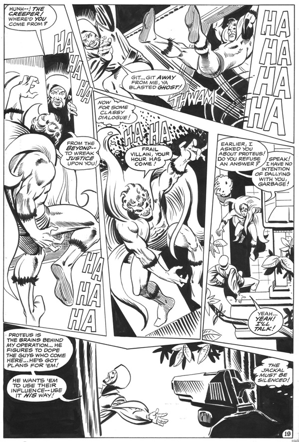 Collect original art for any length of time and you'll accumulate a list of opportunities you let get away. (There's probably a whole, sad thread there!) Among my "ones that got away," many years ago, was a Ditko Creeper page, reasonably priced. This is a very nice one Brian. Congratulations. This has so much more power and life than the cautious photo referenced stuff that clogs the stands these days.