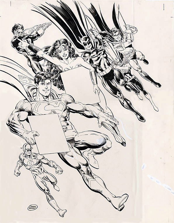 on the dealer's website it has the following text attached:"Total Justice Poster Art - used for schools to promote reading.The Green Lantern figure was deleted from the final published version".