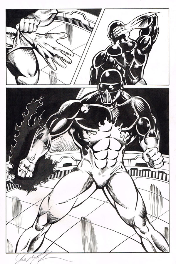 Here's something not-so-new with me, but it's only now I got time to scan and share it. Two pages of Shadowflame from Joe Martino, which he gave free in one of our original art transactions. Joe is also a big fan of JB, and the cover of his Shadowflame TPB is drawn by JB: