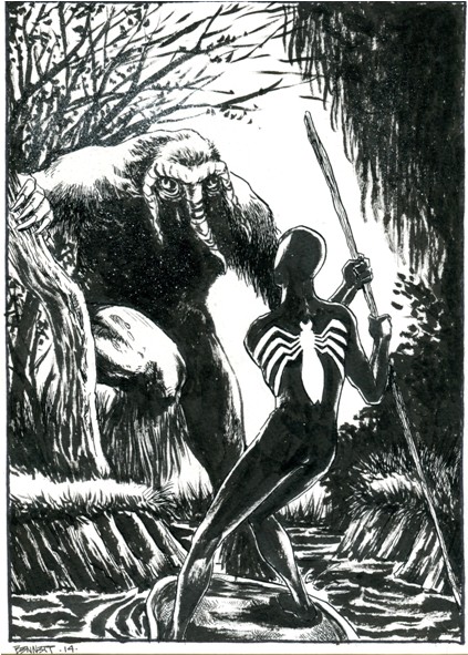 Last one from Gem City 2014, Andy Bennett's take on the cover to Marvel Team-Up 68.  I requested the black costume because I thought it would suit Andy's style and I hadn't had anyone else go that route yet: