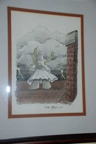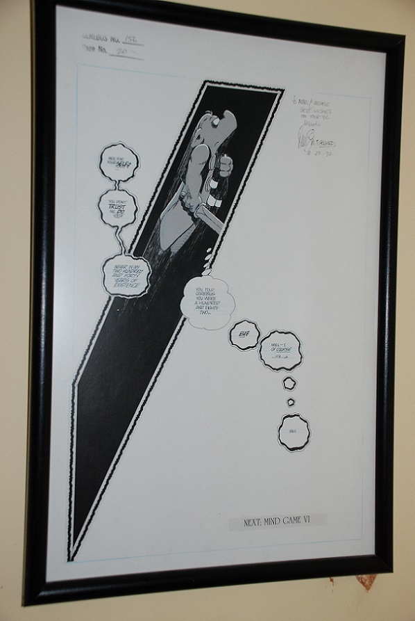 The only pieces of original artwork I've got are a couple of Dave Sim's... My girlfriend (wife now) bought this for me sometime in the late 80s. I think Dave did it for the owner of the shop I bought it from. It's been framed up since shortly after I bought it, so I don't have a good scan of it.