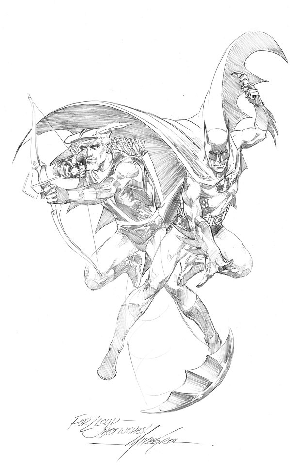 I met Mike Grell this weekend and had a wonderful time watching him bring these two heroes to life on the page right before my eyes. My scans do not do this piece justice; a lot of fine detail is lost.