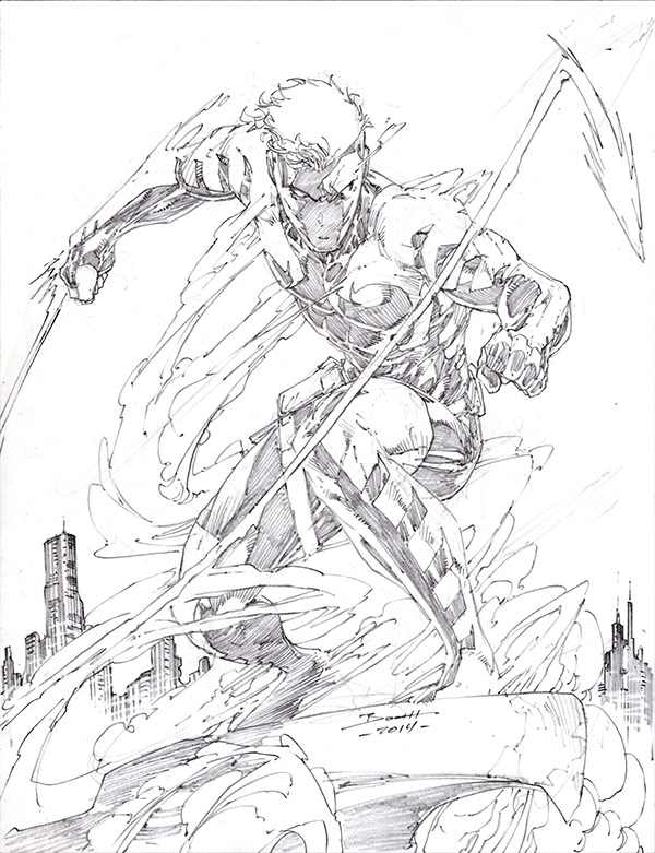 I bought this sketch of Backlash from Brett Booth via Twitter on 8/30. The piece finally arrived. I'm going to talk to his inker, Norm Rapmund, about inking a blueline of this for me.