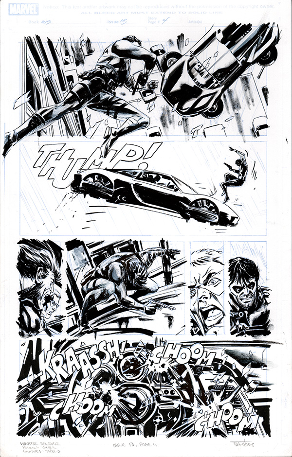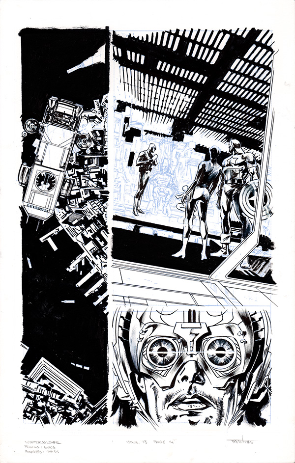 Back in January I picked up some pencils only pages by Butch Guice from the Winter Soldier. I was unable to find the inked pages, so I assumed they had digitally inked them. Last weekend I came across the inked pages for sale via a random search on Comic Art Fans.