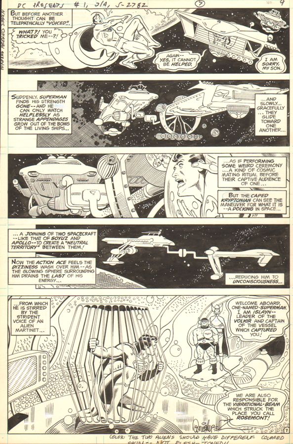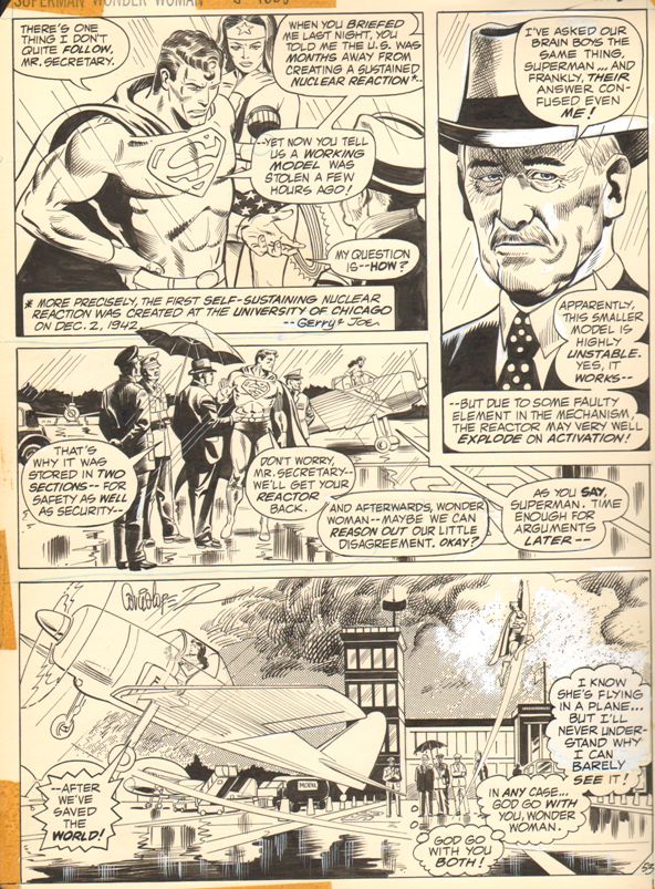 While I may have seen this book at some point during my childhood, I was never drawn to it simply because the team- up didn't appeal to me at the time. Since then, I've become much more aware of the art contained within these pages. I am very happy to have a page featuring both Superman and Wonder Woman as well as a nice shot of her invisible jet. The art in this book is awesome and I am very fortunate to be able to see it up close.