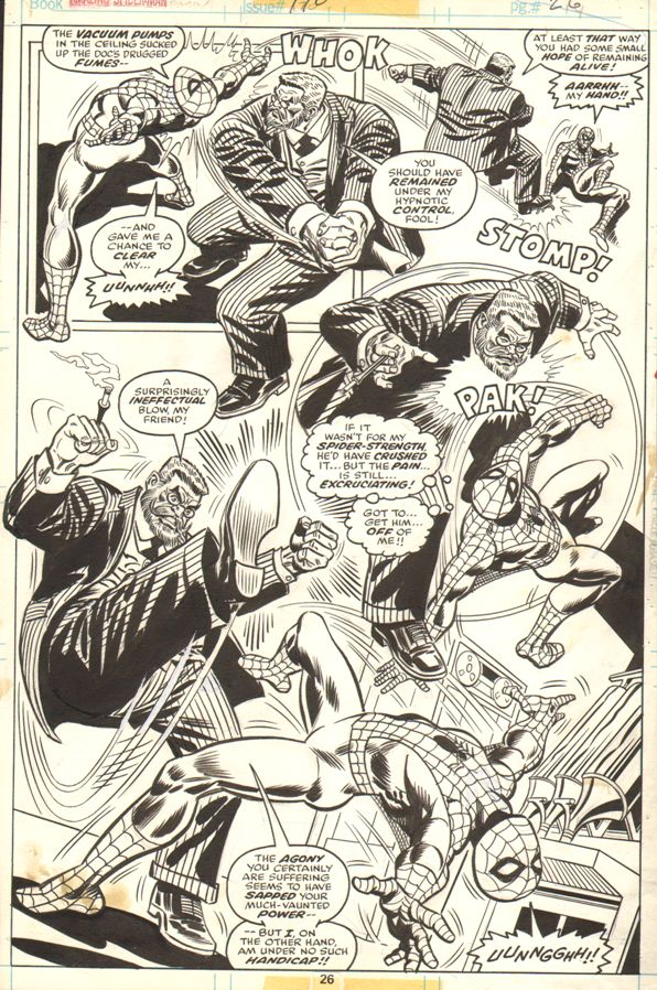 I was giggling like a 9 year old kid when I was able to get a hold of a page from one of my favorite childhood issues of my favorite childhood title a handful of years back. I had been mentioning it to a friend recently and showed him the page in a reprint, adding that it was "the best page from the book!"... before flipping a few more pages and then conceding that maybe a page following it was the best page. Literally a day later, the very same page that had trumped the original I had purchased became available.... Amazing Spider-Man #170, page 26. I love this story and the story! I don't use the word "grail" very much when referring to my collection, because I've been extremely fortunate at the incredible artwork drawn by so many...... but this is certainly one of my faves!