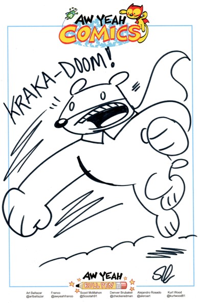 The Aw Yeah Comics crew was out in full force at the Cincinnati Expo! Scoot McMahon was offering free sketches with any purchase of his new comic Sami the Samurai Squirrel. I had him draw Awesome Bear: