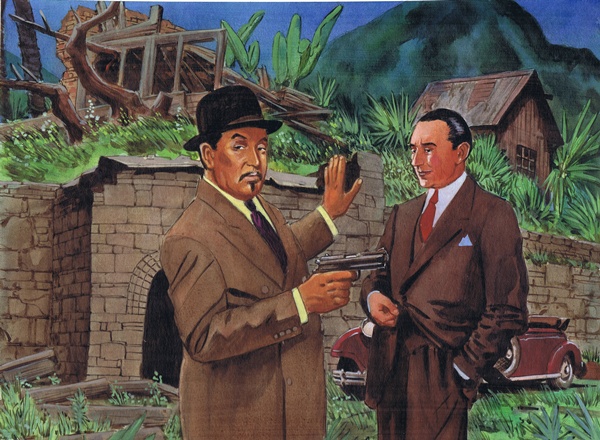I am a huge Charlie Chan fan. Love the movies, read the books and comics. I have never had a Chan commission before. I asked Mike Vosburg if he would be willing to do a Chan piece. He too was a big fan and ended up doing this wonderful piece of Warner Oland and Bela Lugosi from The Black Camel. He changed the setting and went for the traditional Chan outfit. In the film Chan wore a tuxedo.