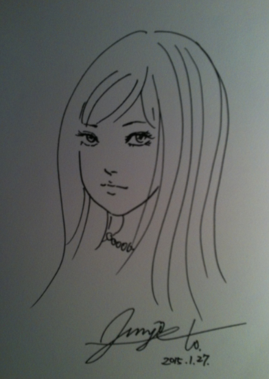 Small sketch from Japanese Master of horror Ito Junji I met yesterday.
