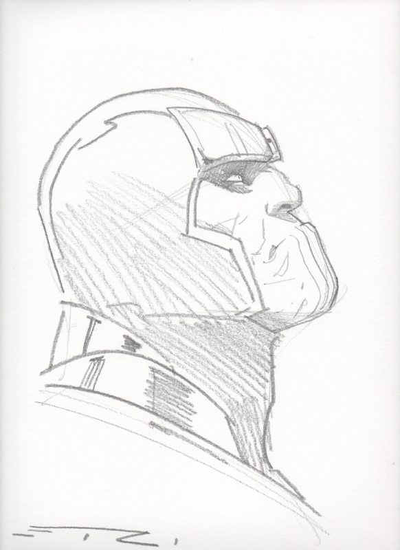 At the latest Paris convention, I spent some time watching Esad Ribic work and it was quite the experience ! Unfortunately, I was not able to get a painting commission from him, but I was happy to come out with a quick sketch of Thanos.