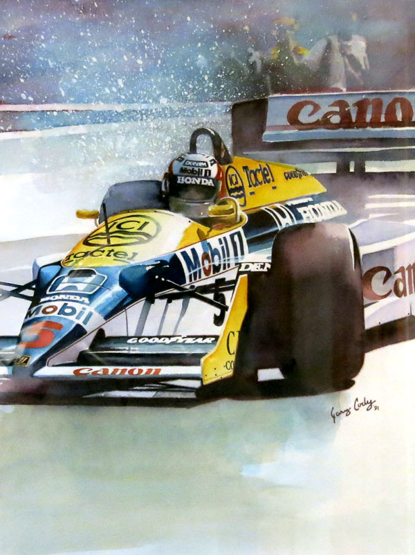 Not comic book art but Byrne related. This is a painting by Gary Cody who has worked with JB in the past on Next Men, Babe and Danger Unlimited. The previous owner mentioned Gary and John Byrne had done a project together and Jim wound up with some of Gary’s paintings and it was purchased thru Jim Warden. No idea if it has been published or what it was used for. Haven't been able to find a contact for Gary to get more info. With a little research I found it features the Formula 1 Williams-Honda #5 driven by Nigel Mansell from 1986 (the paint scheme with the sponsors helped narrow it down) . The year he narrowly lost out to Alain Prost in the final race of the season. Yes I am a F1 fan and did watch Mansell, Prost and Senna back in the day.