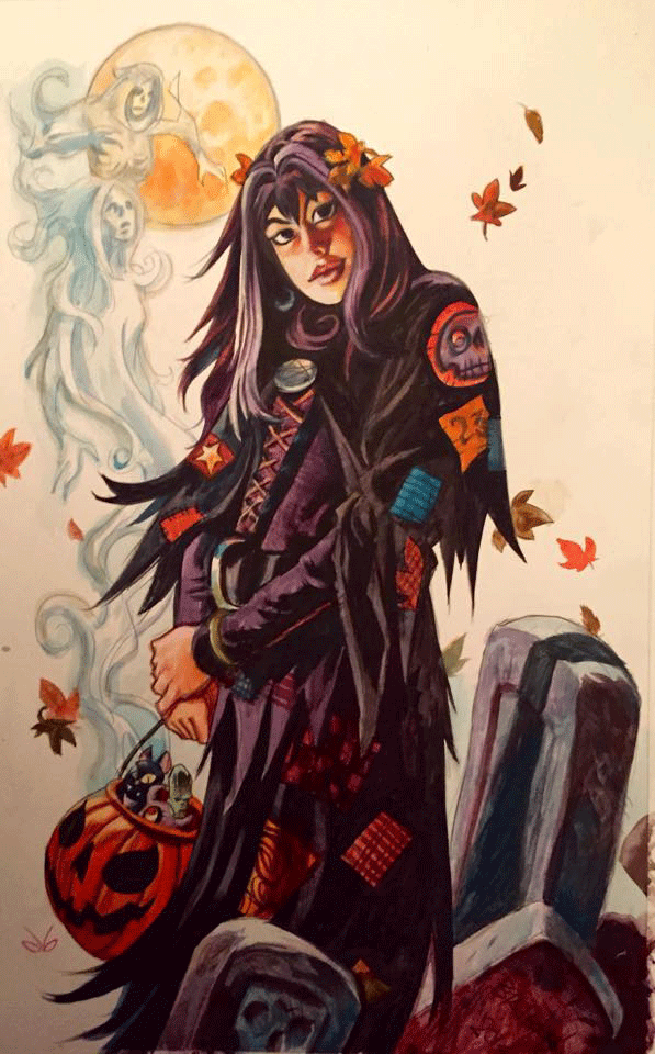 I don't throw around the term 'grail' very often, but if there's been one for me for the past fifteen years or so, it's been to own a Nocturnals piece of any kind by Dan Brereton himself. Finally this year he offered a kickstarter with a commission price that was something I could convince myself I could afford so I jumped at the chance. This piece is everything I would have wanted. I love the Halloween Girl character and this sums her up so well. It's always Halloween when I look at this one!