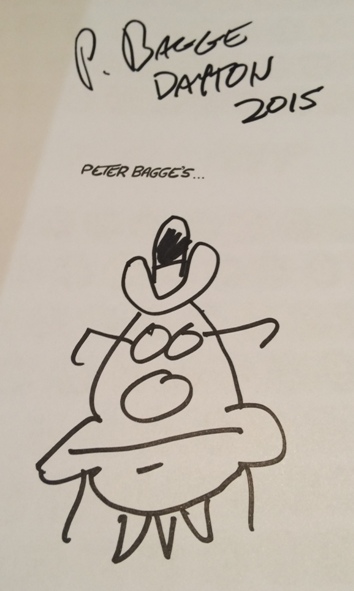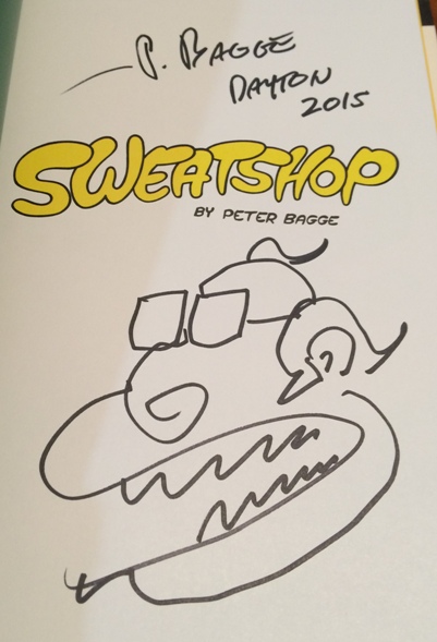I spent a couple hours yesterday at the Gem City Comic Con in Dayton, Ohio where I was very pleased to meet Peter Bagge. I've just recently gotten into his work and he has quickly become one of my favorite creators. Here are a couple quickie doodles inside two of his books I purchased from him:
