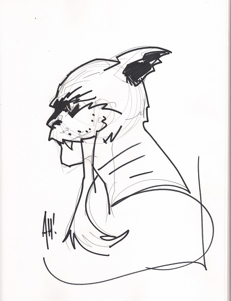 An Adam Hughes Wildcat headshot done a NJ store appearance for his Spider Gwen cover.