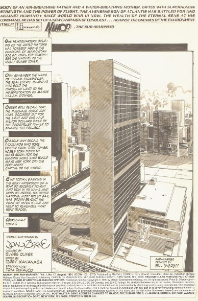 I'm a sucker for an opening splash like this one with the credits, indicia and all that.  Great shot of the United Nations Building.  Had to have this.  I notice this is my third straight new page without any character's faces on it.  Ha!  That's got to be a record.  I shall remedy that with my next posting...