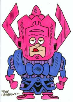 This is a sketch card Fred Hembeck did for me. It's on it's way to my home accompanied by a bigger commission(also of Galactus) in the format of a Dateline:@!!?.