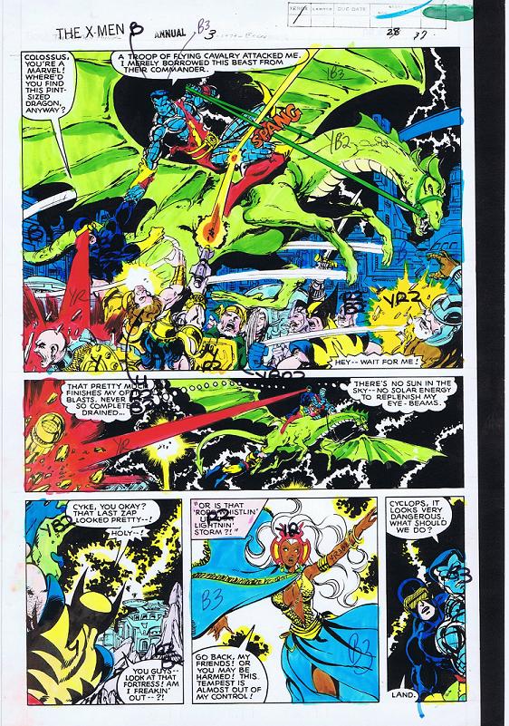 I received a "color guide" grail here-- the one page of X-Men Annual 3 where John Byrne inked George Perez, colored by Glyn Wein. It's beautiful up close. I think this is a pretty good scan.