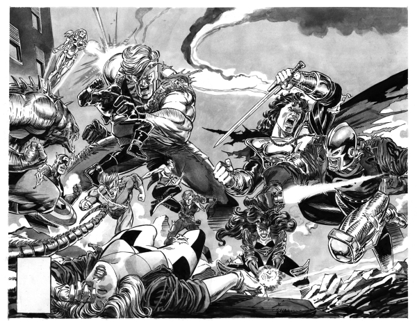Steve Epting and Tom Palmer did this painted cover for Avengers 375, and Joe Rubinstein recreated it for me in b&w with gray toned wash.