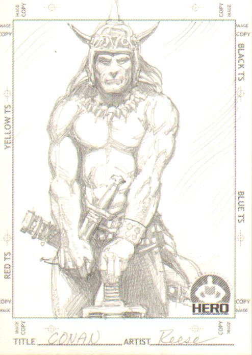 Conan looks both fatigued, yet proud and certainly not to be triffled with. This year's membership package from HERO Initiative included a nice card to add to the 2 others I've received from them. While the George Perez and Phil Hester cards are stunning in their own right, this Conan piece shows Ralph Reese's skills off and is even more meaningful since Ralph has benefitted from the agency's existance.