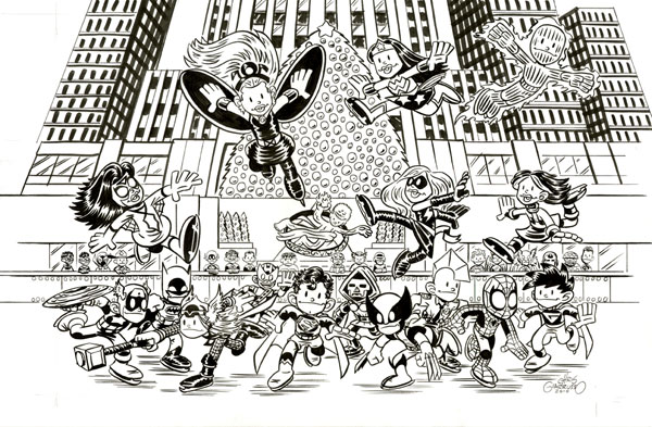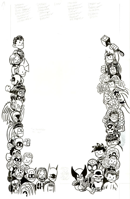 A package from Chris Giarrusso arrived in today's mail with the original art for the Mid-Ohio-Con 2010 program guide sketch cover variant and the 2010 holiday card.