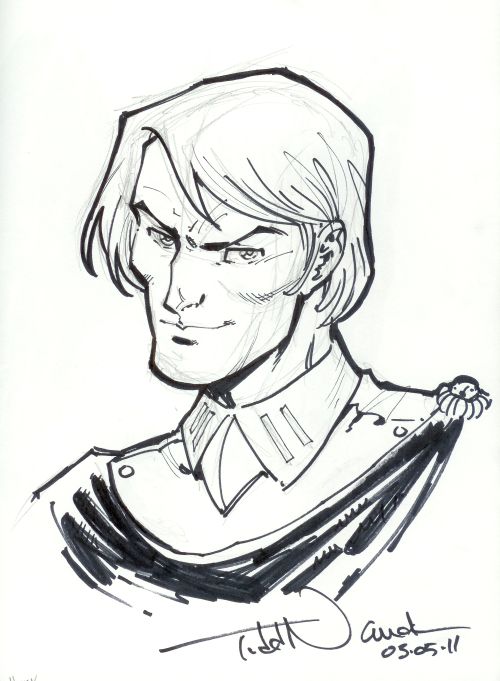 After screwing up at last year's Wondercon by forgetting to bring Aurora reference (had to go with GURREN LAGANN's Yoko Littener instead), Chris got a lot of Jeanne-Marie images to work from today... ;-)
