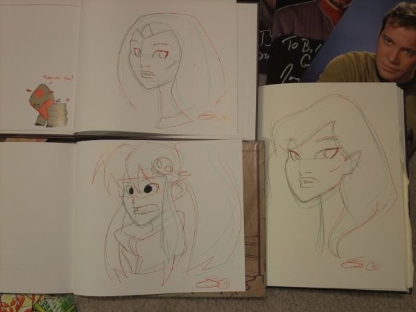 ^ I guess that explains why I got this "someone is walking over my grave" feeling everytime I went near Hardman... @_@;;;; Picked up two art books by Sean "Cheeks" Galloway, and they each came with a head-sketch of my choice... Wasn't expecting that, so got a bit flummoxed about what to choose (it was near the end of the con, so my brain was a bit muddled):