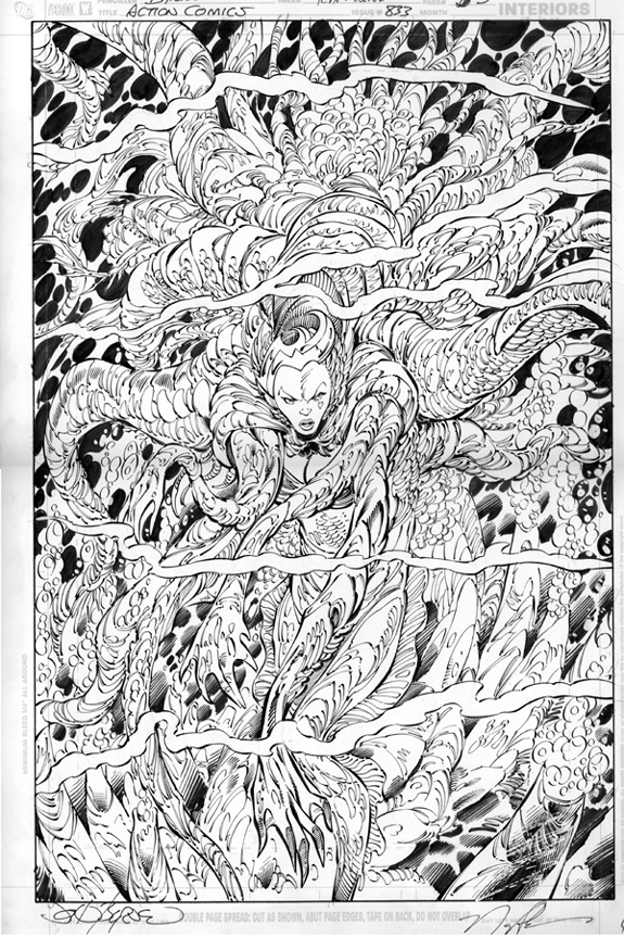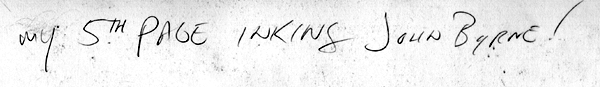 I've had my eye on this one for a long time - Aquired from the Honorable Jim Warden the other day. This is a stunning piece of terrible beauty. The scans really do not do it justice. Here is a link to the pencils in the gallery http://www.artofjohnbyrne.com/gallery/pencils/action/action8 33pencils/ACTION833.05.jpg.php I'm not too familiar with Rapmund's inks in general but they are perfect for this piece and he was obviously excited about the work - see writing on back...