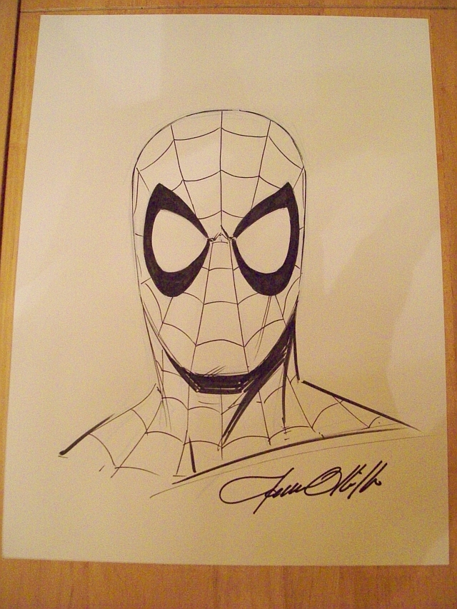 And finally a photo of George Perez, my nephew Tim and I. George in the picture is holding Tim's Robin headshot, I am holding my nephew's Starfire headshot and also displaying my golden age Atom in my sketchbook.
