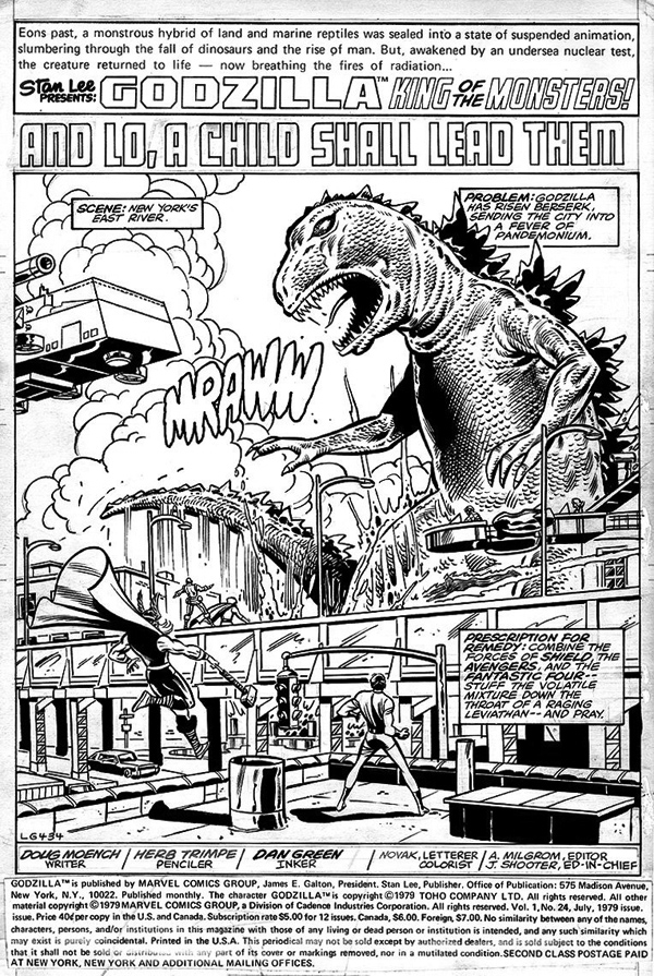 Just got this in the mail. Herb Trimpe splash page from Godzilla #24.