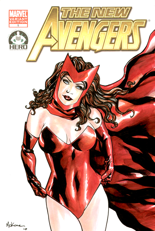 A package from the Hero Initiative arrived last week with the Mike McKone Scarlet Witch sketch on the cover of New Avengers #1 as part of their New Avengers 100 fundraiser project. A great sketch for a great cause, so I couldn't resist! Larger scan here if you'd like to check it out in greater detail.