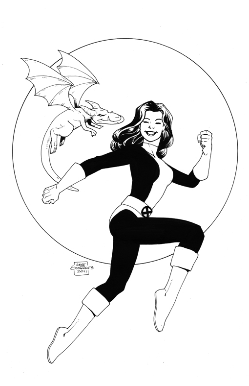 Gene Gonzales is on the home stretch with the "Conventionless Convention Sketches" that I recently commissioned from him. He sent me this scan of his fantastic Kitty Pryde and Lockheed sketch today.